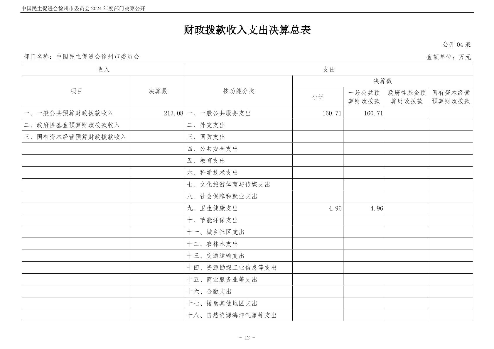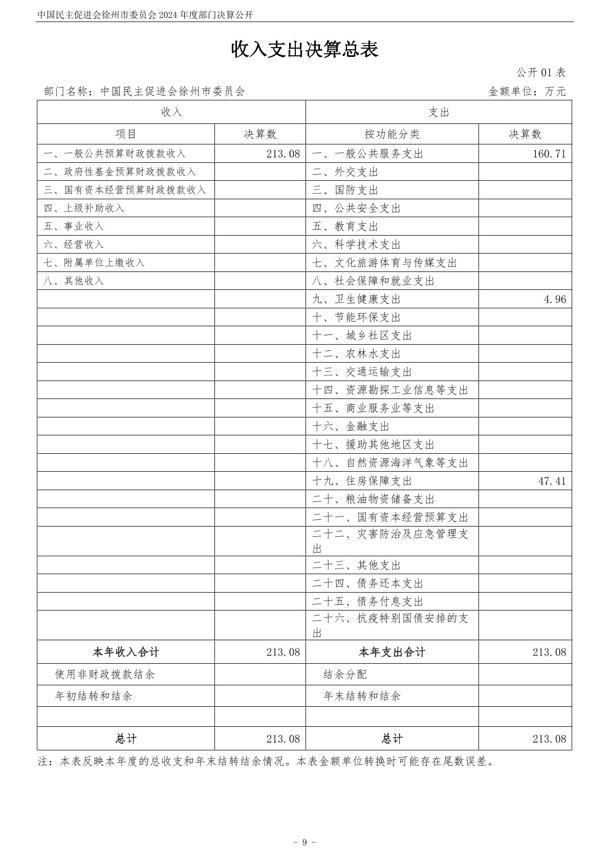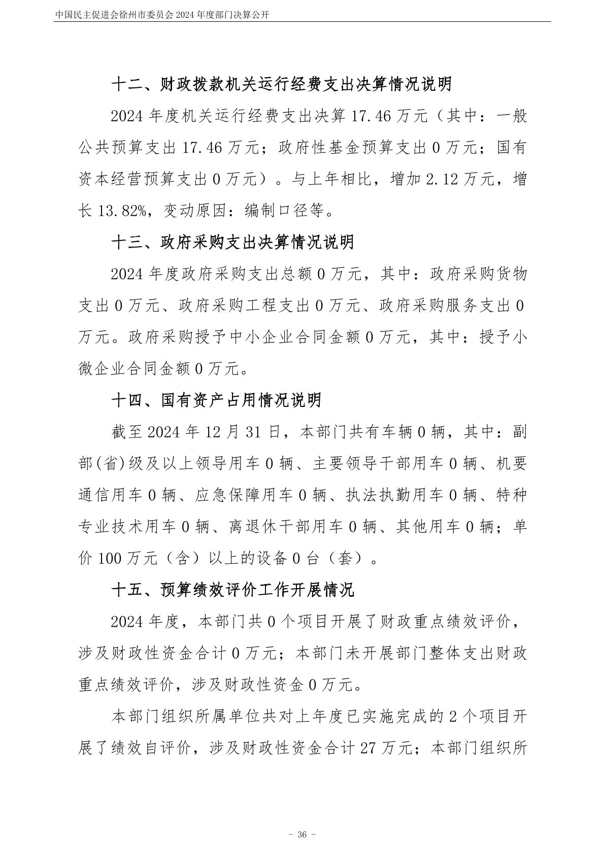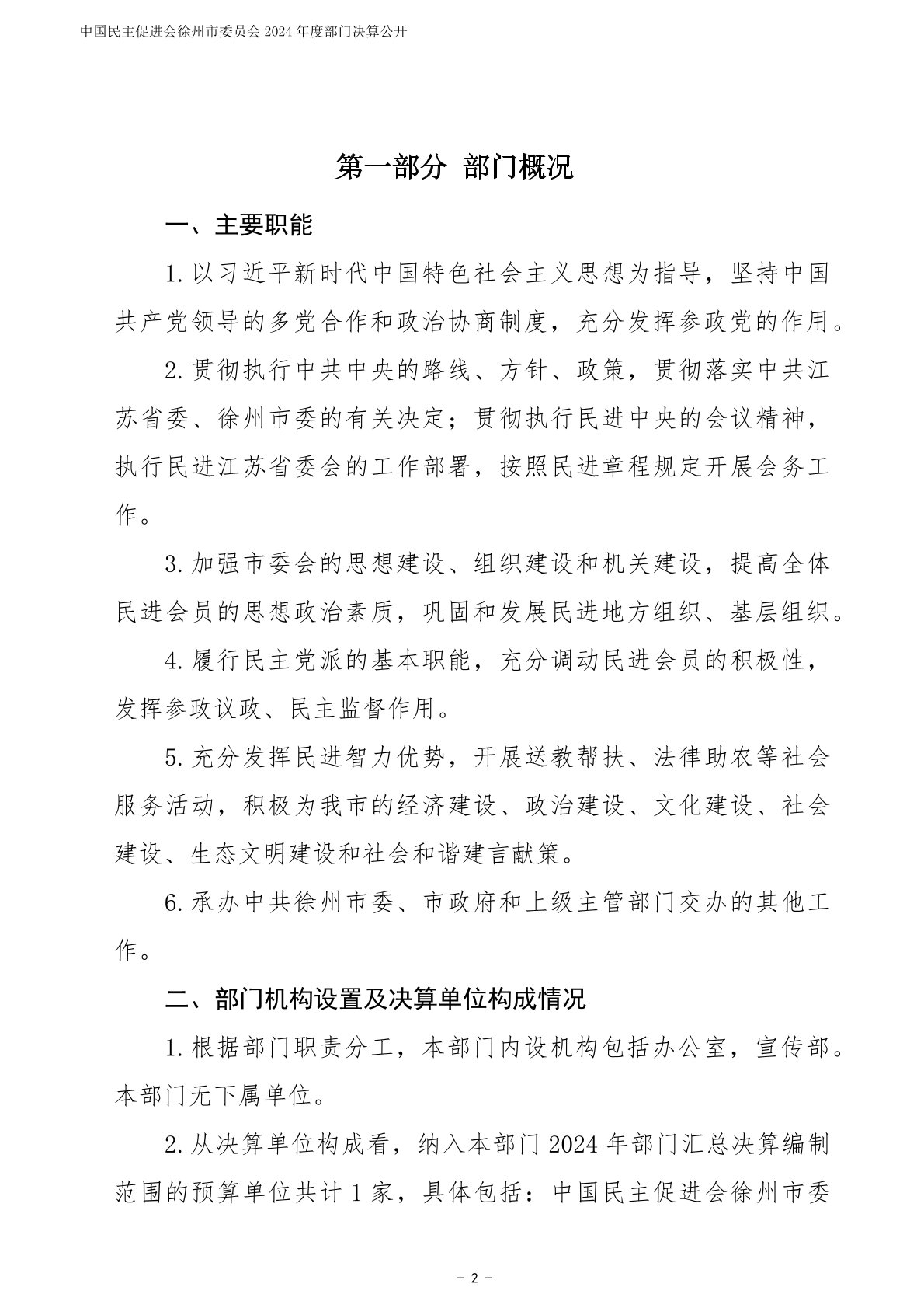 中国民主促进会徐州市委员会2024年度部门决算公开