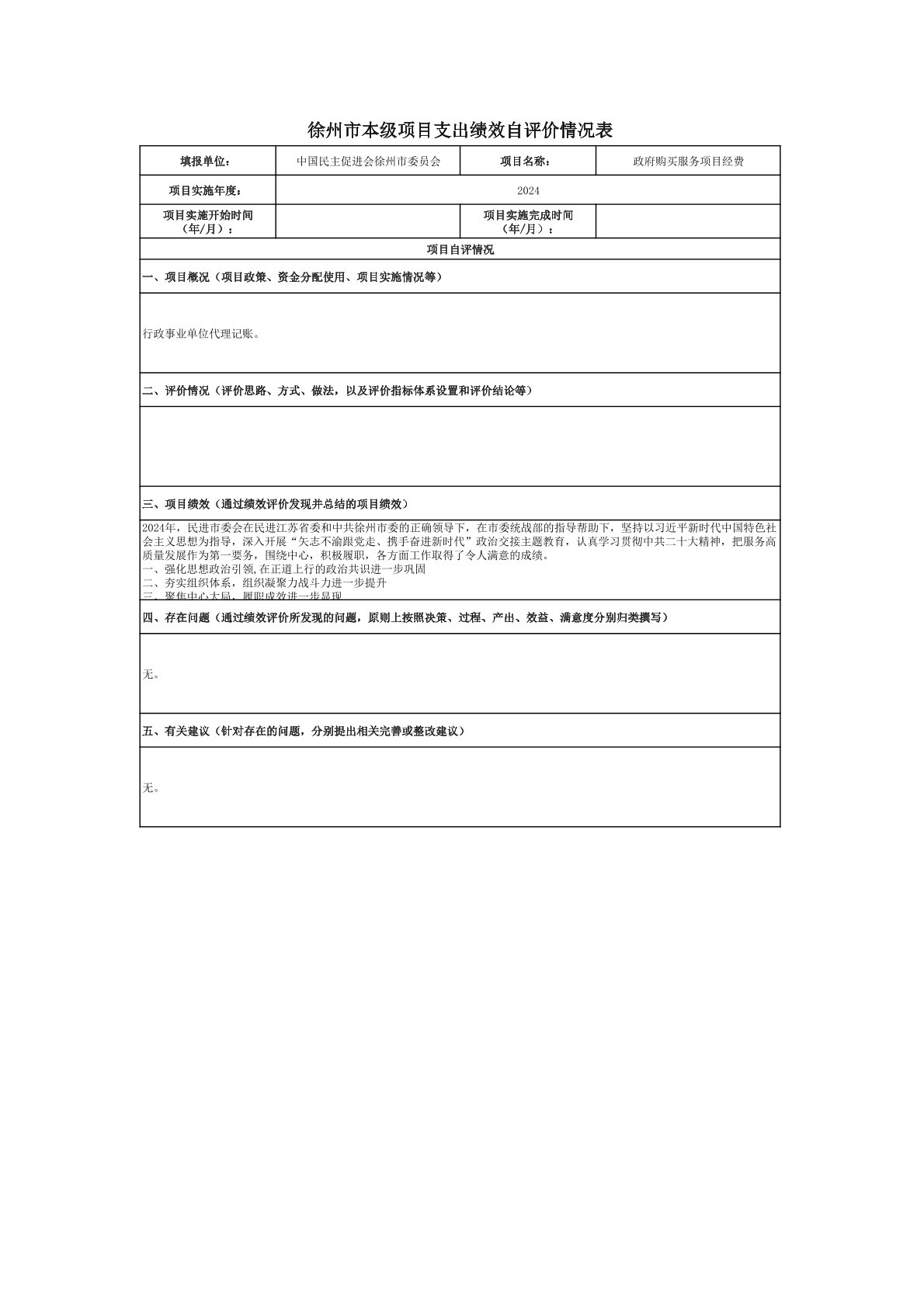 中国民主促进会徐州市委员会2024年度项目支出绩效自评
