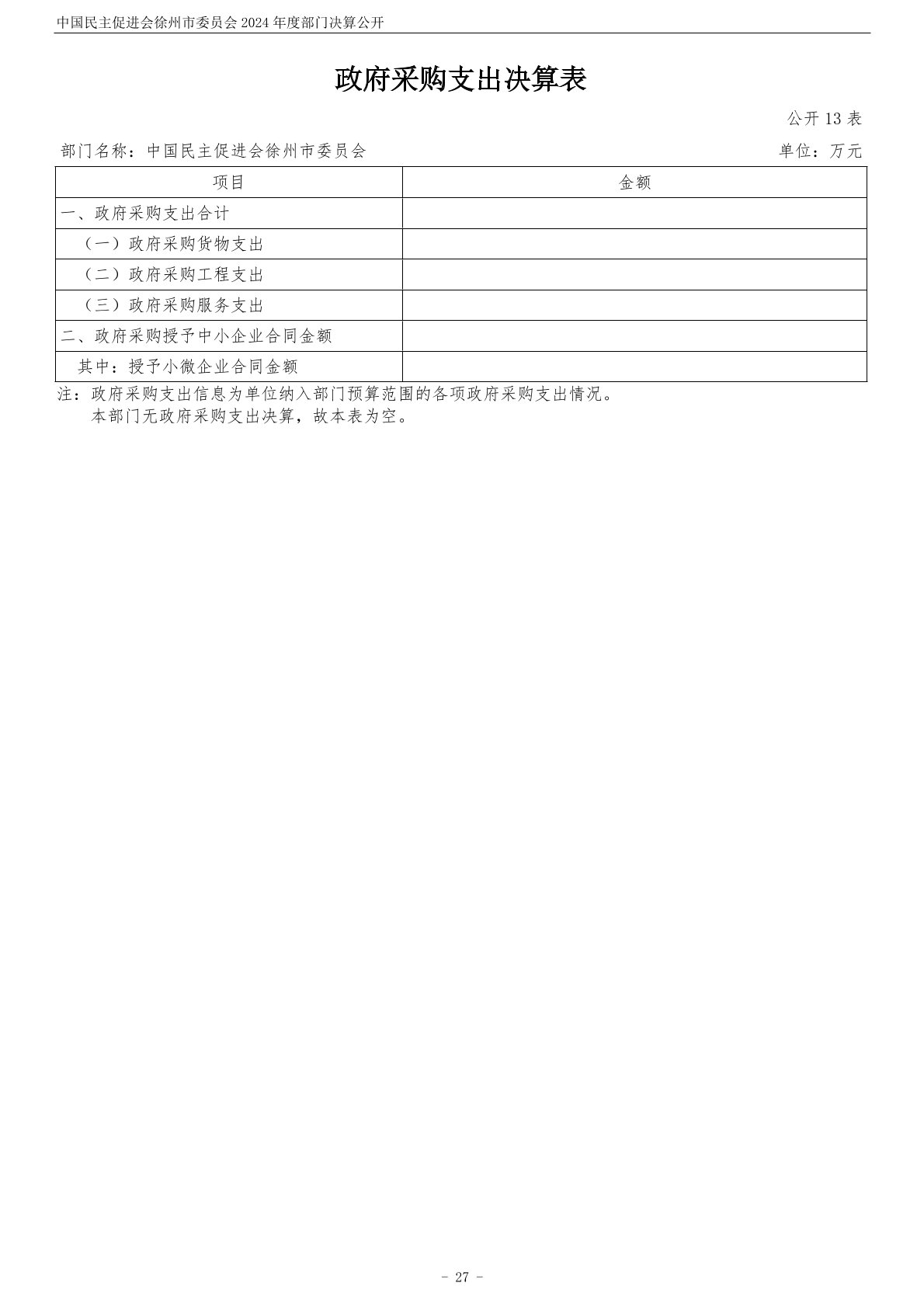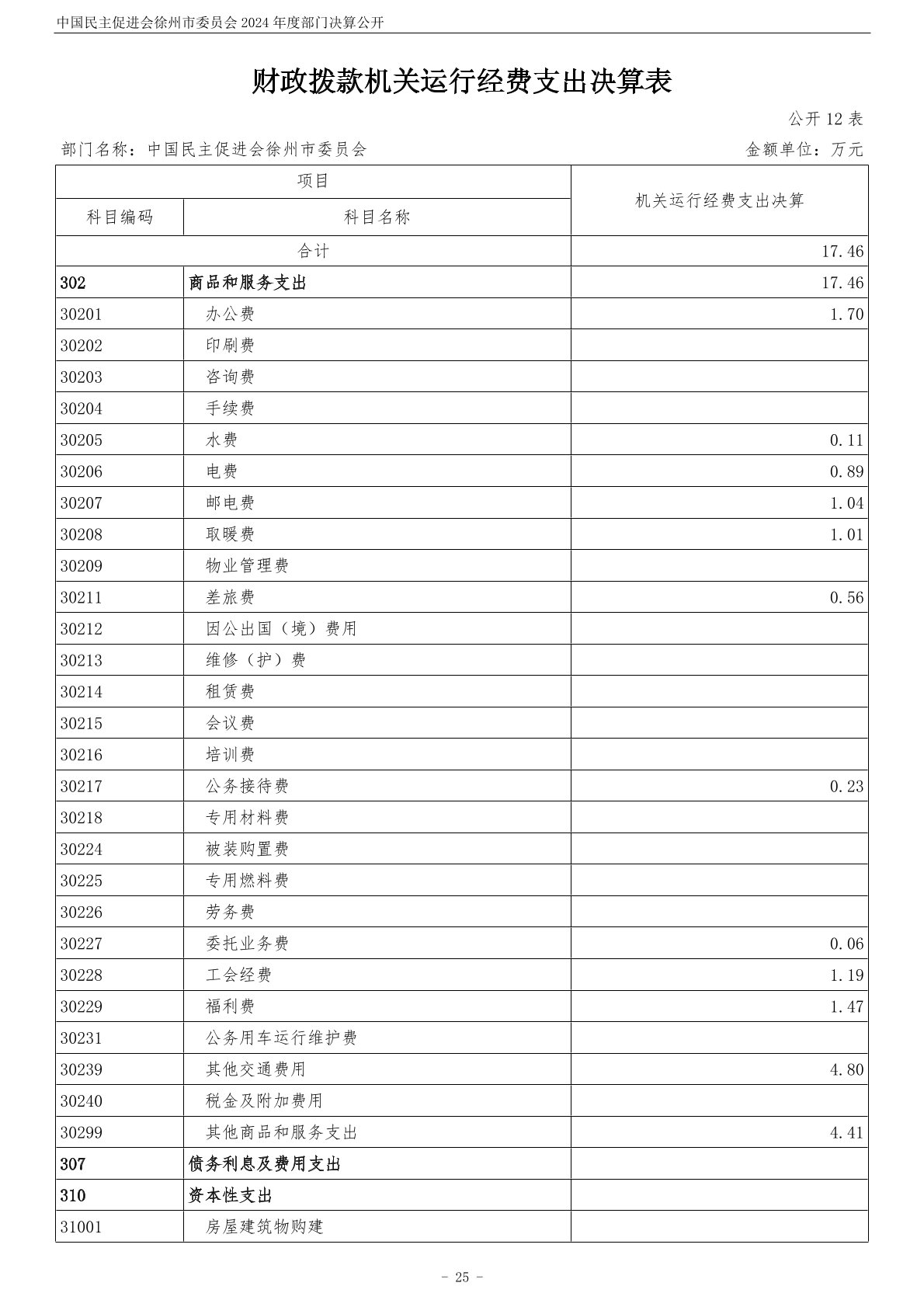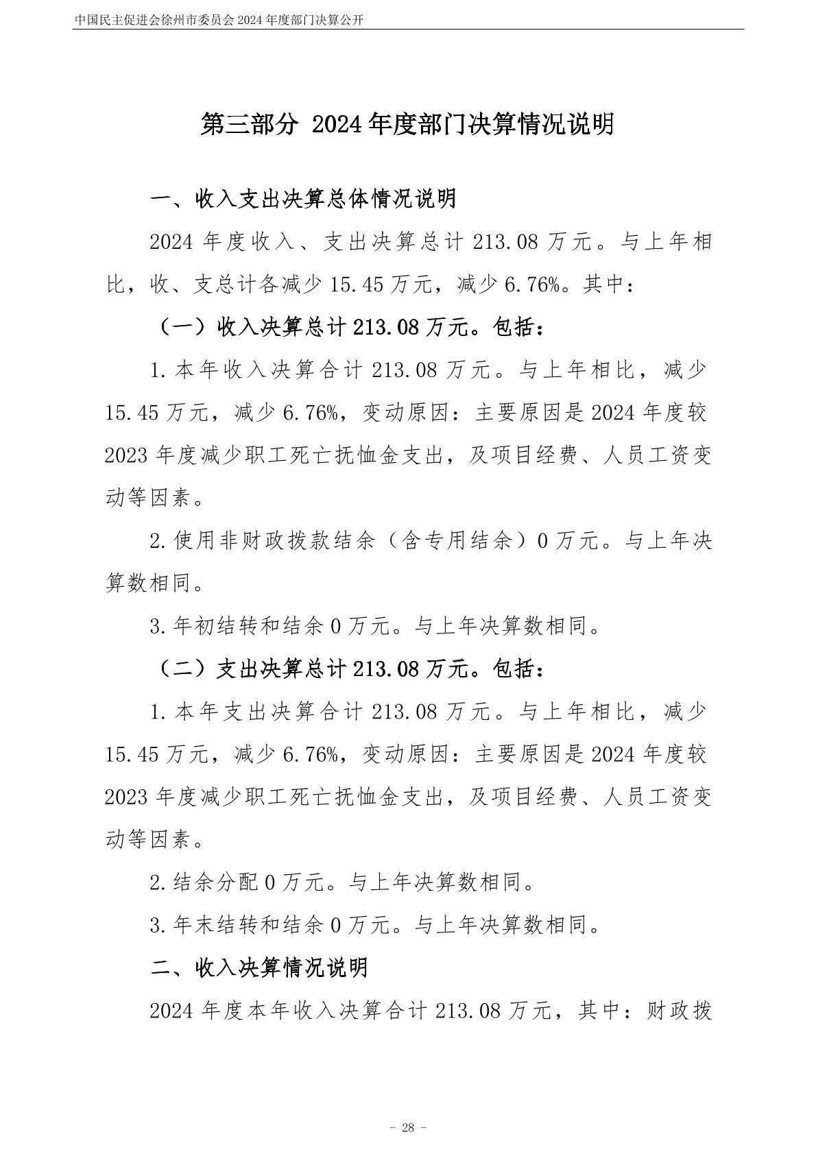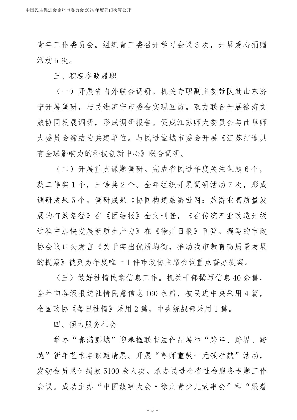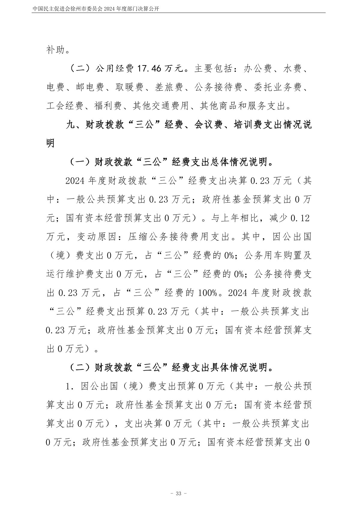 中国民主促进会徐州市委员会2024年度部门决算公开