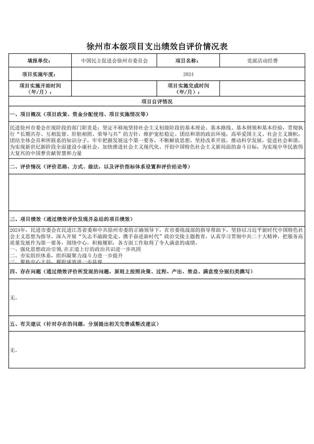 中国民主促进会徐州市委员会2024年度项目支出绩效自评